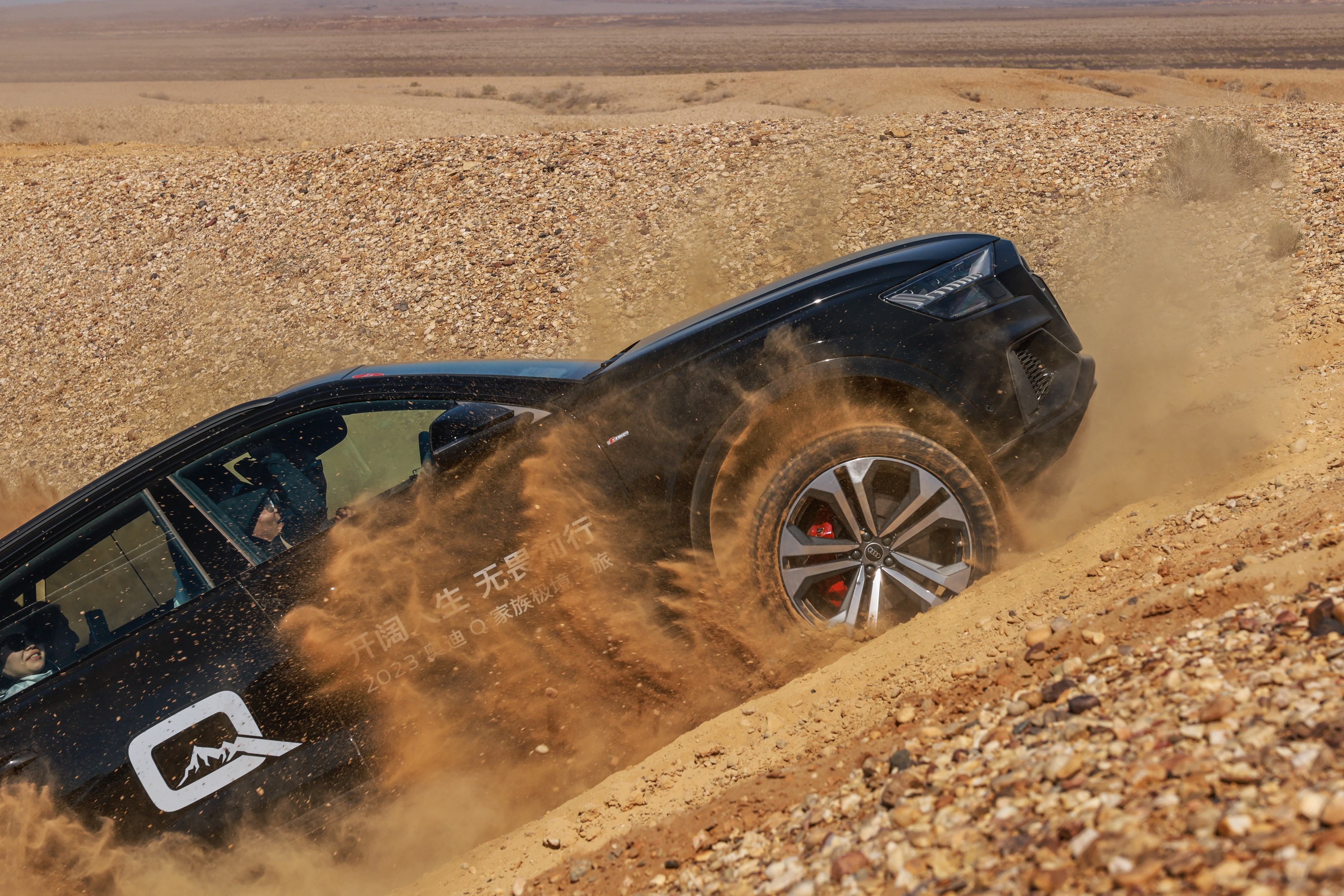 就比如在穿越無盡沙漠之中,2023款奧迪Q8給筆者留下深刻印象。車圈常說“盡管踩油門,剩下交給quattro”,深入沙漠腹地,2023款奧迪Q8標(biāo)配的quattro全時四驅(qū)系統(tǒng)便派上用場了,純機械中央差速器以40:60比例將動力傳送至前后軸,極限條件下可達(dá)到30:70,甚至15:85,另外,由于2023款奧迪Q8采用全鋁車身最大程度降低車重,我們在進(jìn)入沙漠試駕之前甚至沒有放低胎壓,在這樣的條件下,全程使用越野模式,輕松完成穿越。