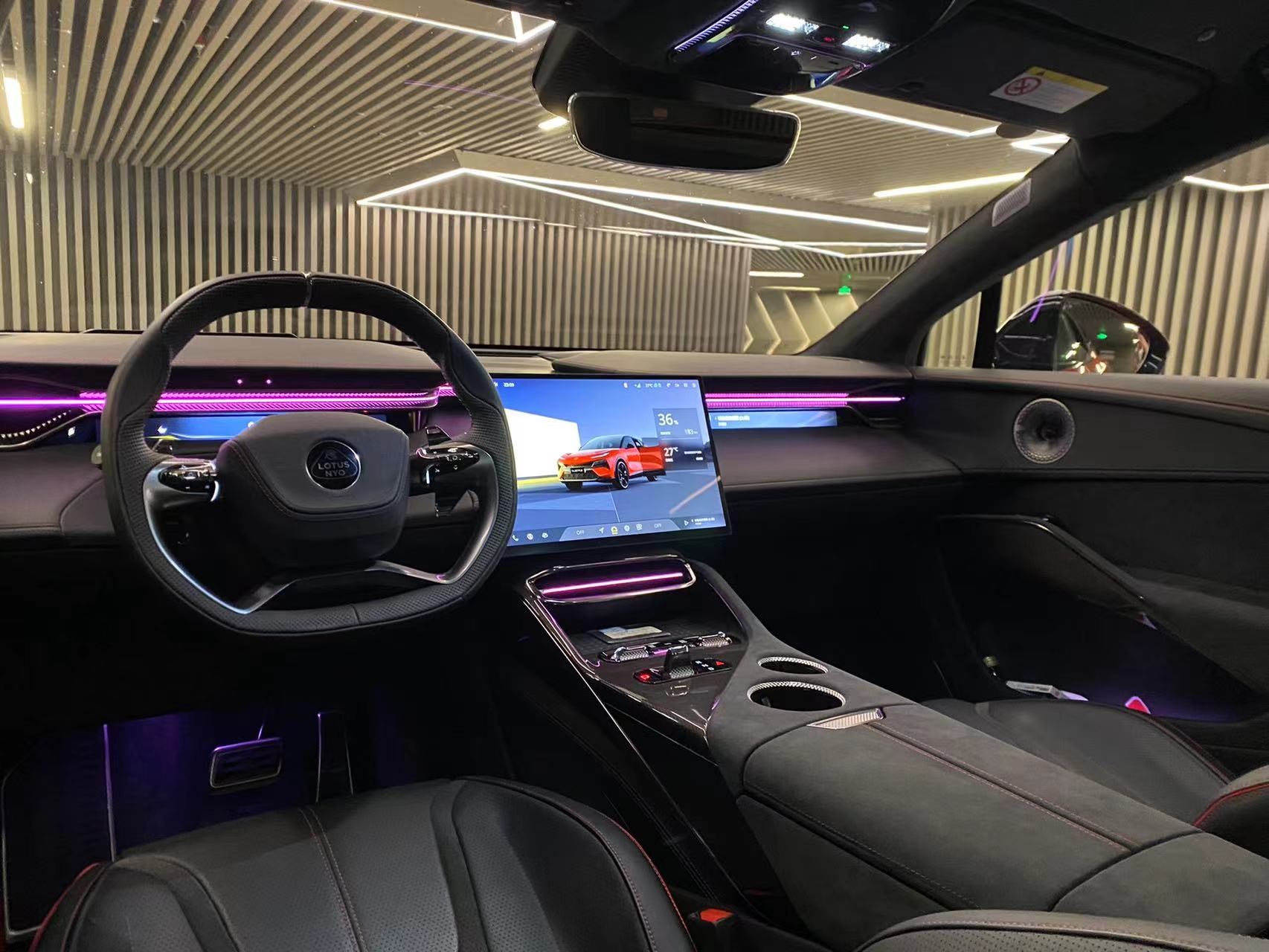 打開無邊框車門進(jìn)入內(nèi)飾,路特斯Eletre可以說很好的詮釋了什么叫運(yùn)動與科技感的碰撞,車內(nèi)大量采用了Alcantara與碳纖維的包裹,讓筆者充滿駕駛的欲望。