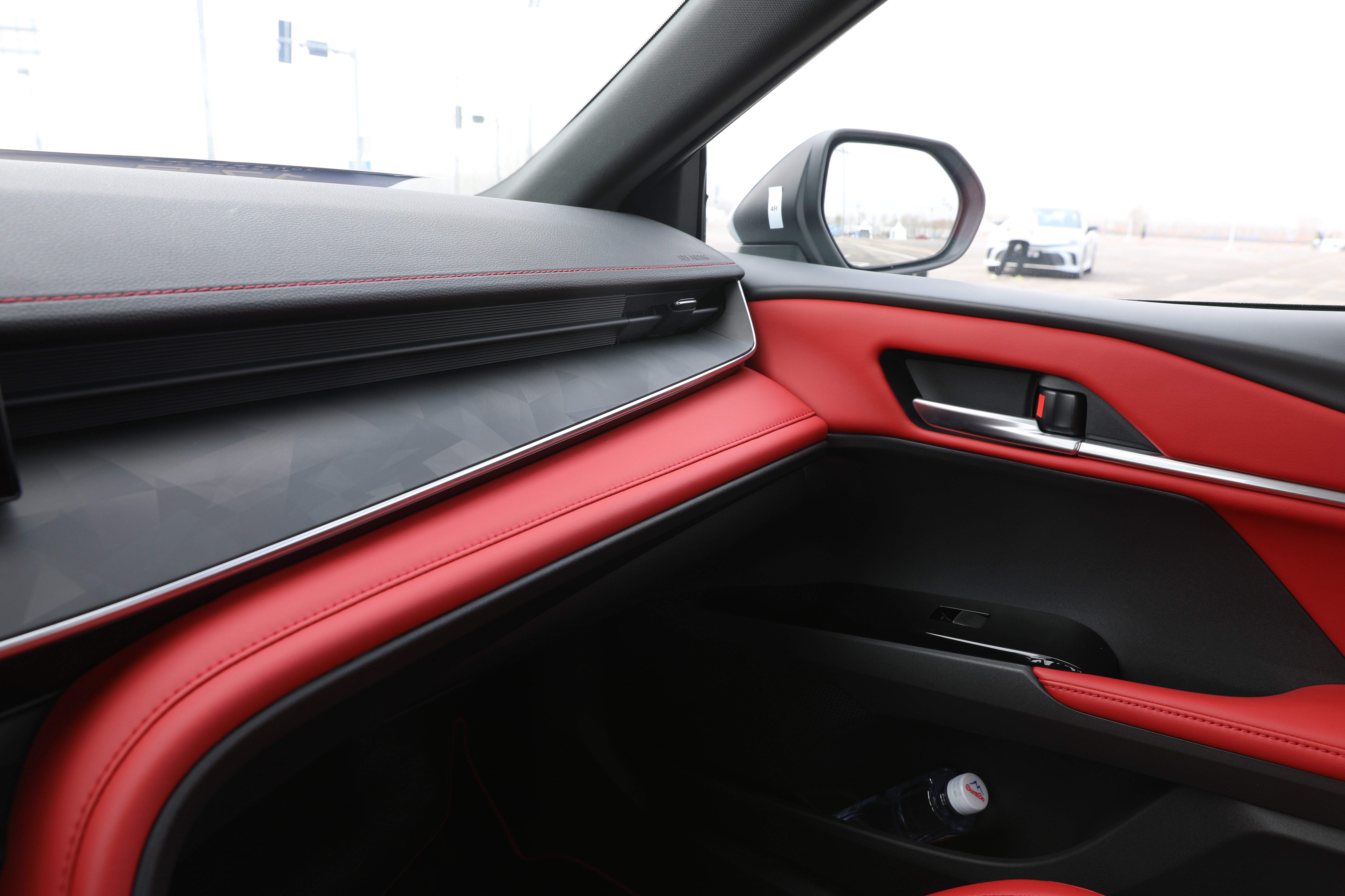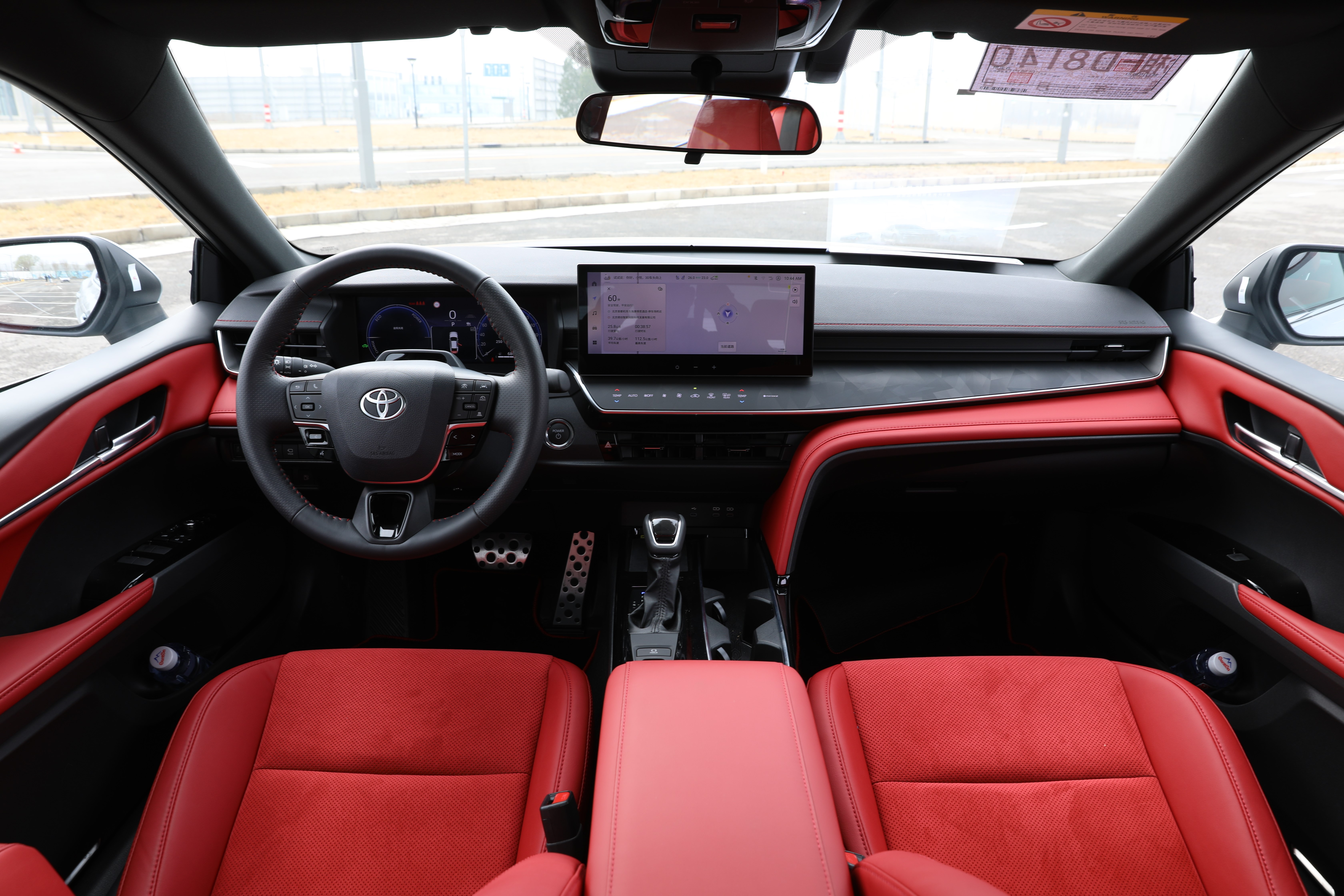 圍繞車內智能化的升級,9代凱美瑞絕對沒有令大家失望。造型上,9代凱美瑞依舊采用非對稱設計,但相比8代凱美瑞,新車型顯然是針對造型搭配做出了減法,更簡潔的設計理念一目了然,減少了大量實體按鍵也符合如今用車習慣,配色上,實拍車型選擇黑紅搭配,整體顯得更加運動、年輕,而筆者個人更喜歡黑棕的方案,那份溫馨與典雅更與凱美瑞互搭。