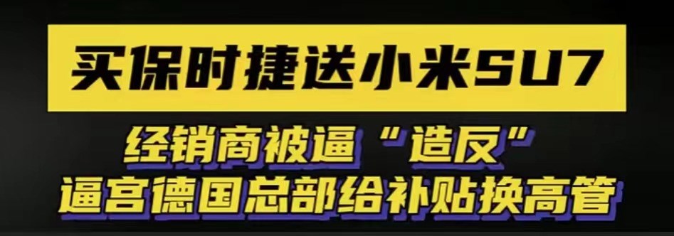 也就有了開頭,買保時(shí)捷Taycan送“小米SU7”,經(jīng)銷商被逼“造反”等消息。造反:部分經(jīng)銷商更是停止了進(jìn)車。
