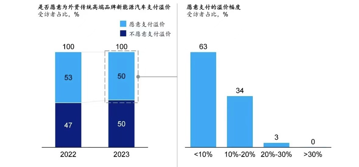 在《2024麥肯錫中國(guó)汽車消費(fèi)者洞察》中顯示,50%的受訪者不愿意為外資品牌支付溢價(jià),相比于無(wú)形的品牌力,消費(fèi)者現(xiàn)在更愛實(shí)在的技術(shù)與配置。